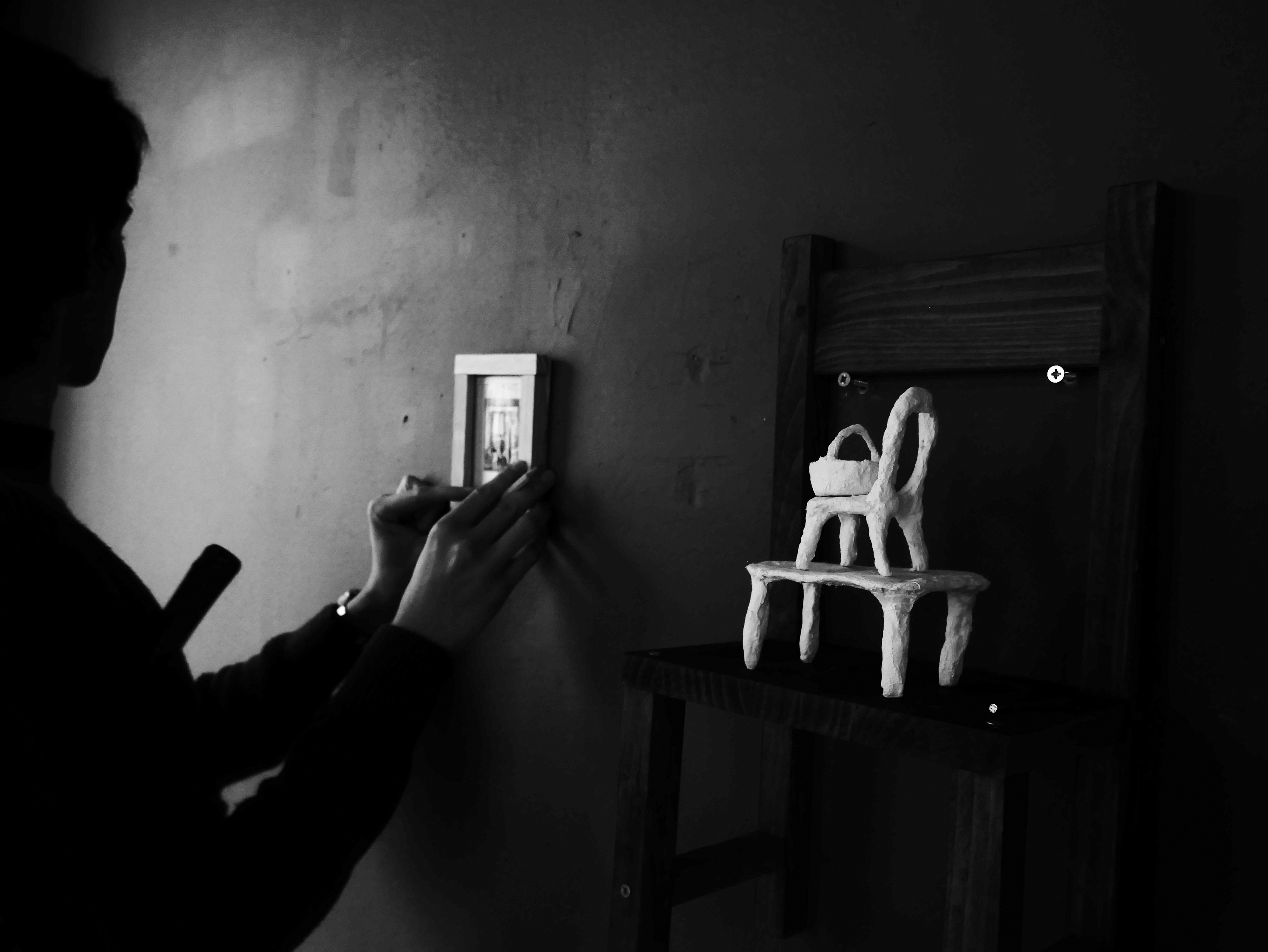 The video shows a decaying summer house, called Cerrillos, that once belonged to my family. Projected in a small format that requires viewers to crouch down to watch, it evokes both intimacy and vulnerability. The house anchors the exhibition in a tangible yet ephemeral memory, setting the stage for the overarching narrative of loss and idealization.